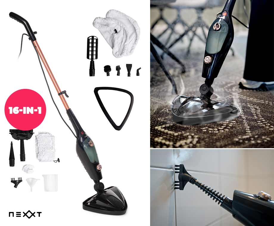 16 in 1 schoonmaaksysteemHet uitgebreide accessoirepakket maakt deze stoomreiniger een echte alleskunner. Tapijt, meubels, ramen, sanitair en meer zijn in een handomdraai weer schoon.