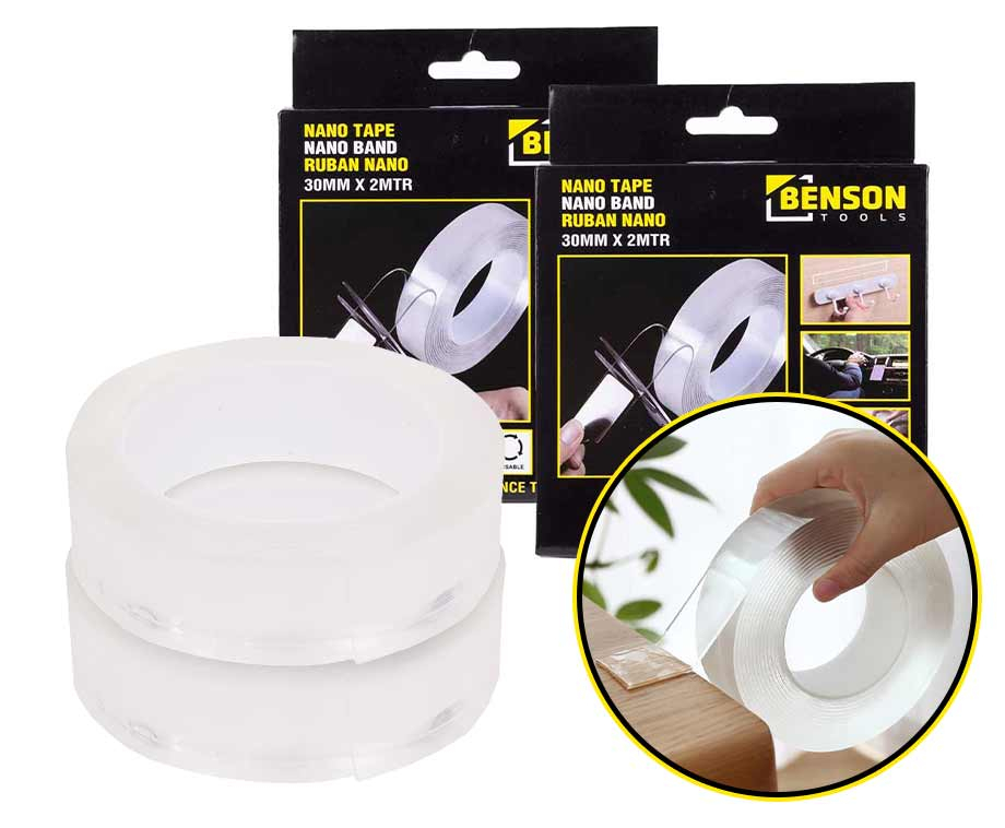 Of je nu aan het klussen bent, aan een hobbyproject werkt, of gewoon een praktisch hulpmiddel zoekt voor in en rondom het huis, de Benson Sterke Dubbelzijdige Nano Tape is de perfecte keuze.