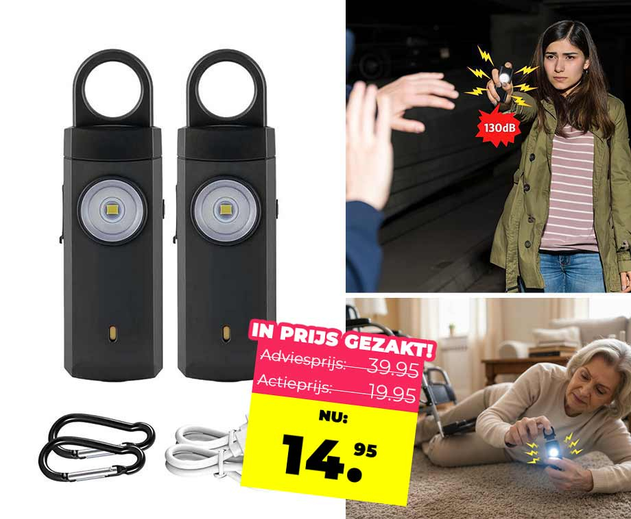 Altijd een veilig gevoel op zak met dit compacte veiligheidsalarm met 130 dB sirene en felle LED-stroboscoop. Makkelijk te activeren en perfect voor onderweg.