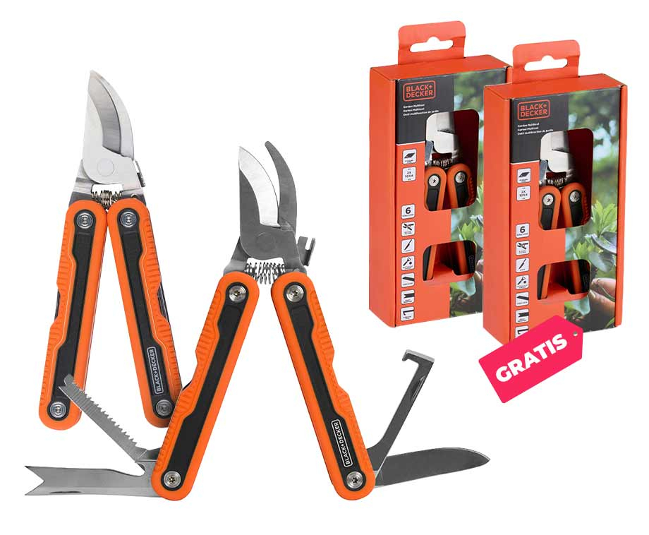 Krachtige tools in een compact designDe multitool is uitgerust met onder andere een snoeischaar, mes, zaag en wiedgereedschap. Of het nu gaat om takken knippen, wortels verwijderen of onkruid aanpakken, deze tool staat direct klaar. Perfect voor wie efficiënt en zonder gedoe wil werken.