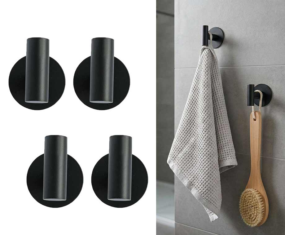 Maak kennis met de zelfklevende ophanghaken, de ideale oplossing voor een stijlvolle en functionele ophangplek in huis. Deze set van twee haken is gemaakt van hoogwaardig roestvrij staal en voorzien van een stijlvolle, zwarte poedercoating. Ze zijn niet alleen strak en modern, maar ook super praktisch: je plakt ze eenvoudig op een gladde ondergrond zonder te hoeven boren. Ondanks hun minimalistische uitstraling, kunnen deze zelfklevende haken tot wel 1 kg dragen. Met een diameter van 5 cm en een hoogte van 5,5 cm zijn ze perfect voor in de keuken, badkamer of waar je maar wilt!